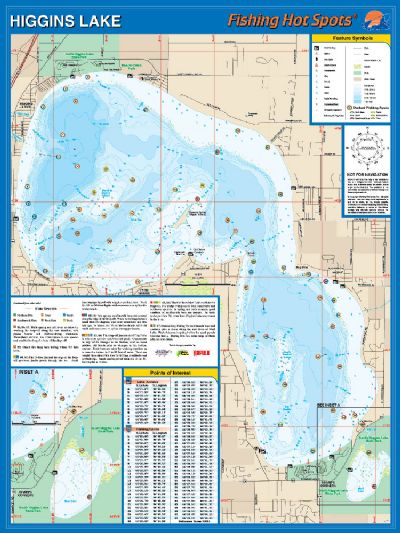 Higgins Lake, Michigan Waterproof Map (Fishing Hot Spots)